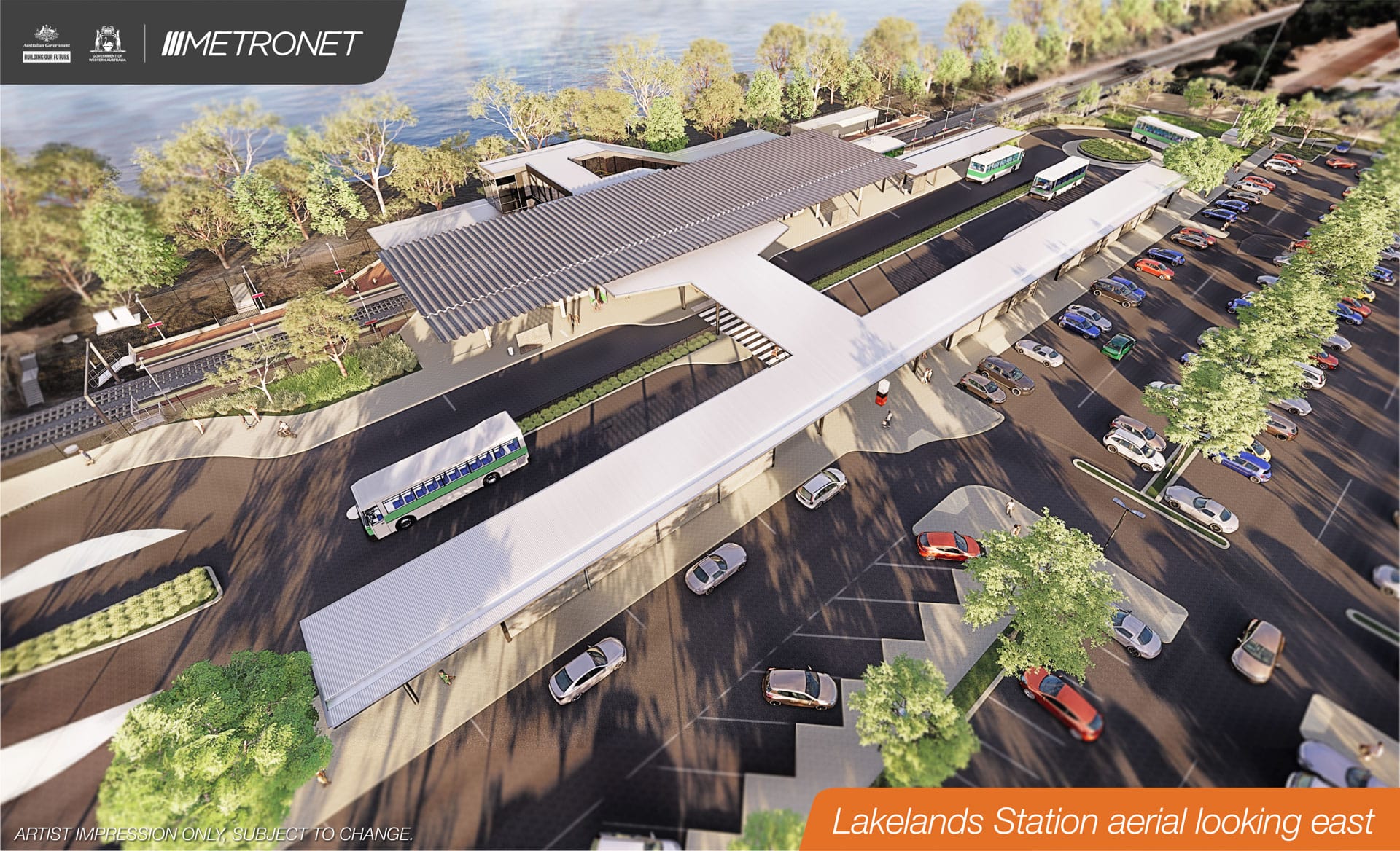 The future station will be built seven kilometres north of Mandurah Station, with car park access off Ashwood Parkway and bus access from Lake Valley Drive. The contract includes building the new train station, a bus interchange, car park and associated infrastructure.