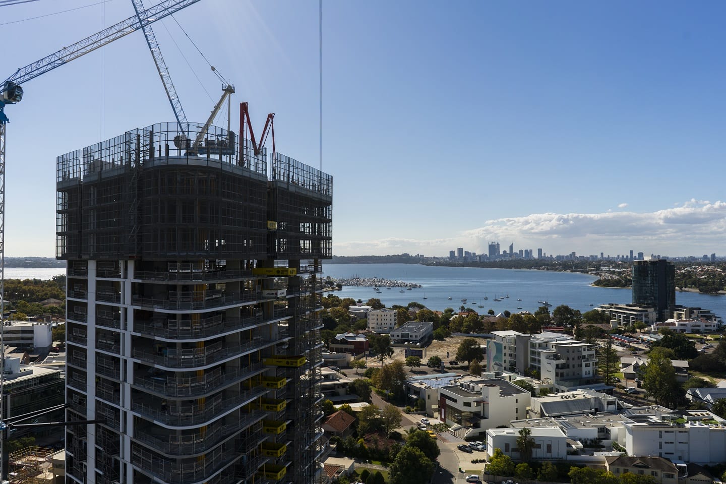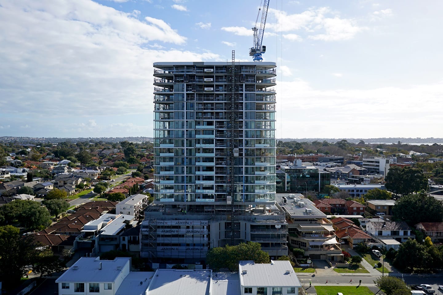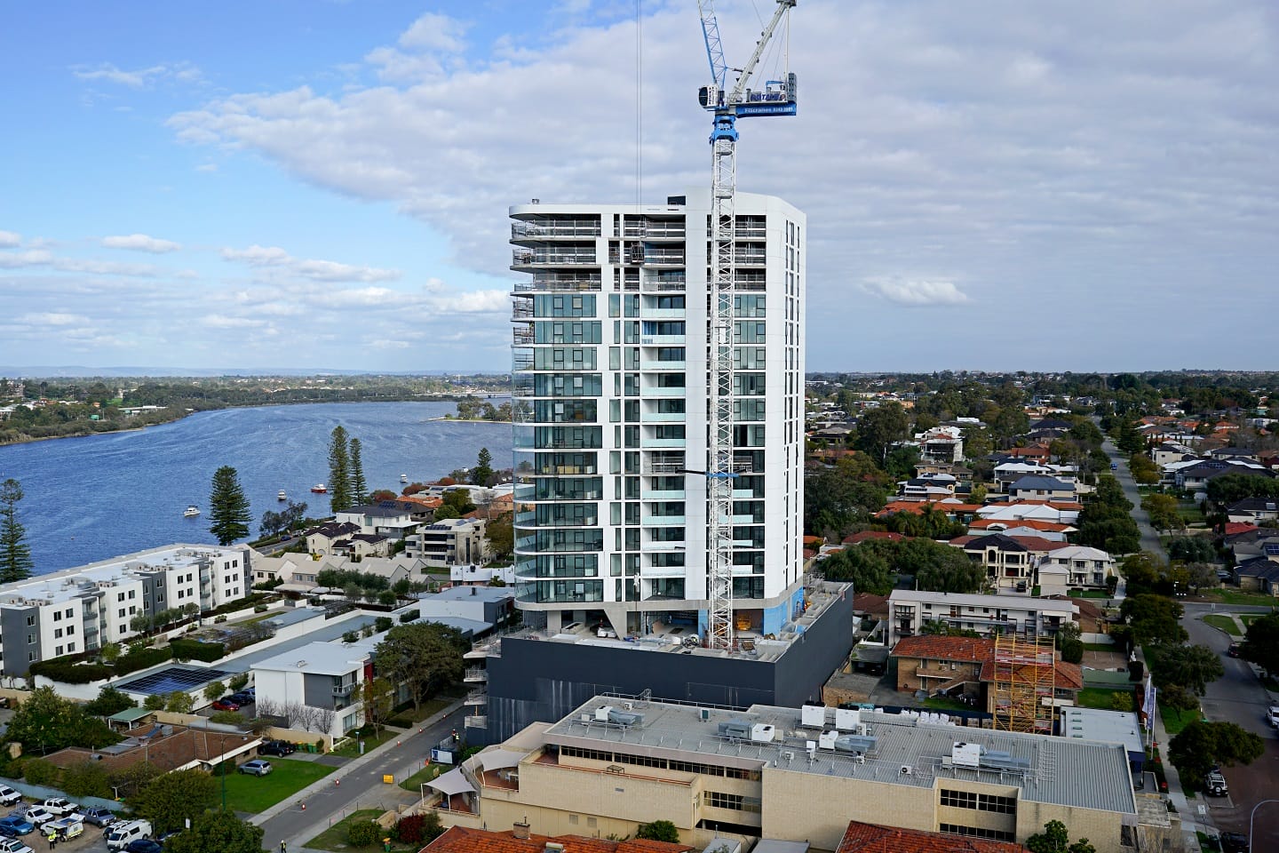 Hera Engineering provided structural design services to MJA Studio and Stirling Capital for the Cirque Apartments residential development. The development will consist of two 20-story twin towers, with 231 apartments and three levels of car park. The towers will be the largest residential development south of the Swan River and one of the tallest residential buildings in Perth. The structural system consists of a reinforced concrete core with localised areas of high strength concrete for enhanced stiffness and ductility. The floor system is a post-tensioned flat slab with large spans up to 10m. The iconic corner balconies which project more than 4.5 metres from the building face presented a formidable design challenge. Hera Engineering delivered an elegant solution which maintained the architectural intent and in the same time not increasing cost and constructability. Hera Engineering worked in close collaboration with the developer and MJA Studio during the built form concept design to improve the aerodynamic shape of the towers, by making adjustments to the building profile such as rounded corners. In this way, wind resistance and overturning moments were drastically reduced, resulting in large savings in steel and concrete quantities. Another major challenge of the structural design was to remove an entire row of columns above to express a dramatic column-free zone on the podium. Hera’s solution was to consider the concrete walls in the area as cantilevered ‘deep beams’ and undertake advanced non-linear finite element analysis to design this complex area. A crucial aspect of the success of this project from a construction point-of-view was keep the amount of structural transfers to an absolute minimum. Hera Engineering worked hard during the schematic design phase eliminate the majority of the transfer elements with innovative engineering of vertical elements whilst maintain the architectural vision and functionality of the building.