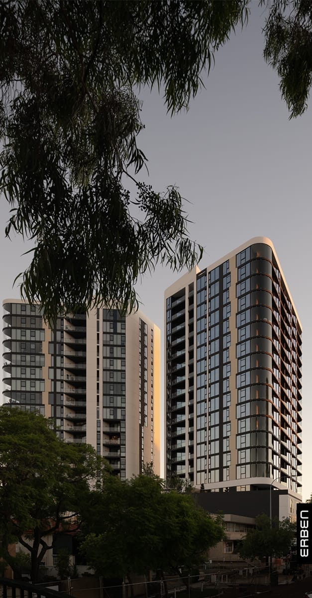 At Hera Engineering, our contribution to the Cirque Duet project in Perth has been primarily focused on structural engineering, post-tension design, and managing temporary works. This project, undertaken in partnership with Erben, MJA, and Icon, is currently under construction and features a strategic design that enhances both aesthetic appeal and functional efficiency across its two high-rise towers.