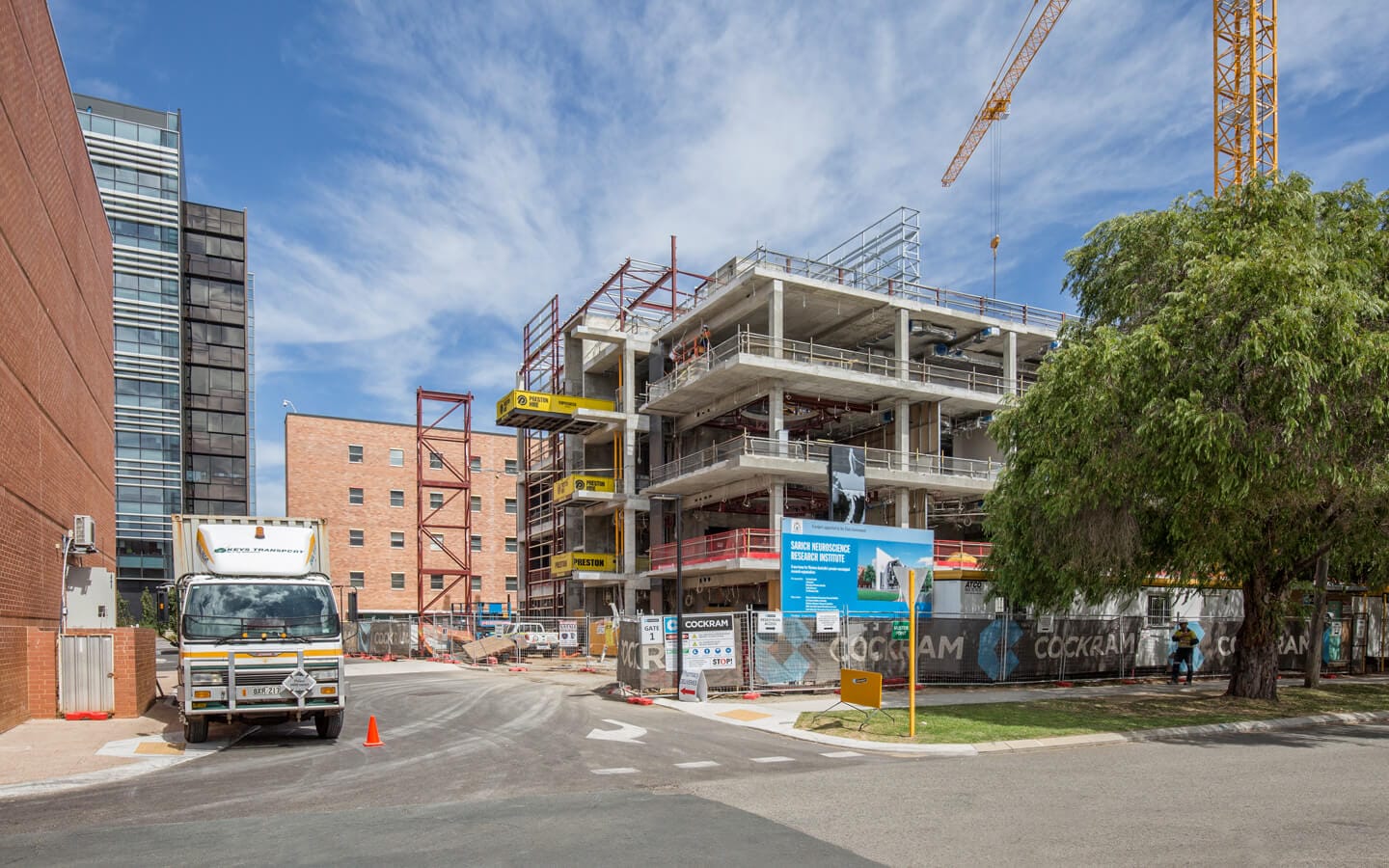 Existing underground services dictated that the only possible tower crane location was located directly on top of the main hospital sewer line. The design constraints were therefore extremely strict to ensure the crane piled-foundations did not impede on or the sewer line. In particular, a precise pile cap settlement assessment was necessary to avoid any possibility of surcharging the sewer.